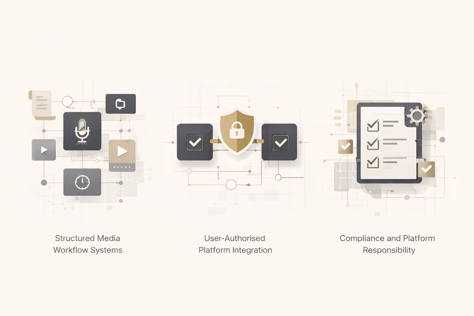 ArcDamLabs builds structured software systems that support AI-assisted media preparation and publishing across supported digital platforms. Our tools are designed to enhance operational efficiency while maintaining full user control and strict alignment with platform policies.